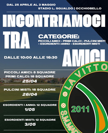 Sarà l’edizione numero dodici quella del torneo di calcio Incontriamoci tra amici organizzato dalla società La Vittoriosa e patrocinato dal Comune di Occhiobello. Nei giorni 25 e 26 aprile, 1 e 3 maggio, nello stadio di Occhiobello, si sfideranno…