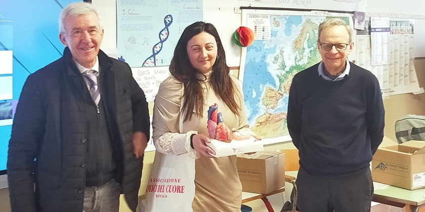 L’associazione ha donato un poster gigante sulla circolazione (sarà appeso nella futura aula STEM del plesso di Santa Maria Maddalena) e un modellino, a grandezza naturale e scomponibile, di un cuore umano.